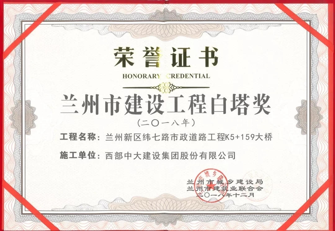 Lanzhou Baita Prize for Construction is an awarding from Lanzhou Municipal. The procedure of assessment is, first, the client apply to a joint commitee, constituted with Lanzhou Construction Quality Surveillance Office, Lanzhou Civil Engineering Quality Surveillance Office and Lanzhou Constructors Association; the joint committee analyze and evaluate all applications to conclude the winners. This honour will enhance quanlity managment awareness, upgrade managment level, and a good example for future work.