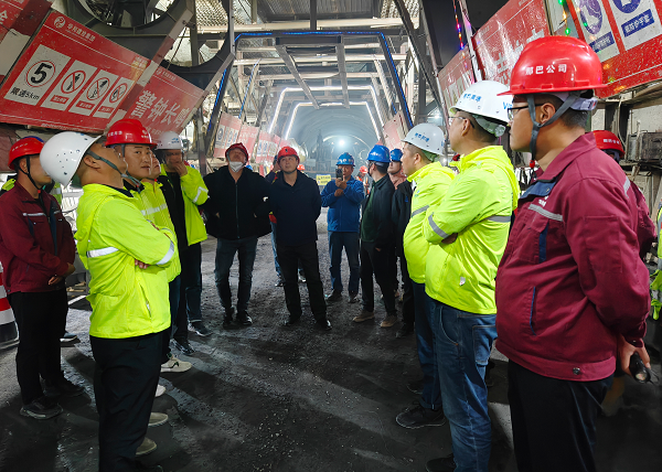 来到艾肯隧道施工现场,观摩团深入隧道内部进行实地走访学习。在隧道内,观摩团感受了艾肯隧道施工环境,近距离查看了隧道开挖、支护、防水等关键施工环节,对项目团队在艰苦条件下取得的建设成果纷纷点赞。