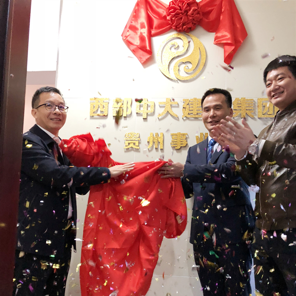 辞旧迎新,林城吉庆。12月27 日,西部中大建设集团贵州事业部揭牌仪式在贵阳举行。西部中大建设集团总裁杨川,研究发展中心总经理蔡继荣、总监李莉,华农保险财产股份有限公司广西分公司、北京中路政华交通技术开发有限责任公司、中交养护工程技术有限公司、贵州智明博建设工程有限责任公司和贵州百易工程有限公司等相关负责人参加了此次揭牌仪式。