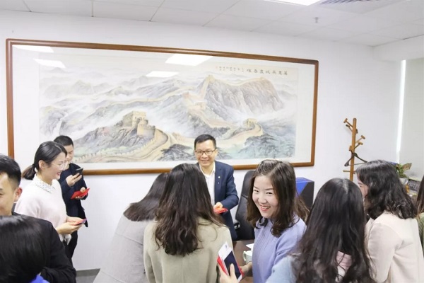 在中大路桥,一大早整个公司都环绕着欢乐愉悦的氛围,许久未见的同事互相诉说着过年趣事,讨论着新年大展宏图的计划。总经理胡秉军为每位员工派送大吉大利的红包一个,代表着来年发发发;并且和每个人亲切合照,向大家致以新春的祝福!