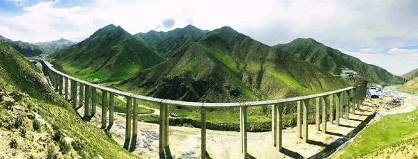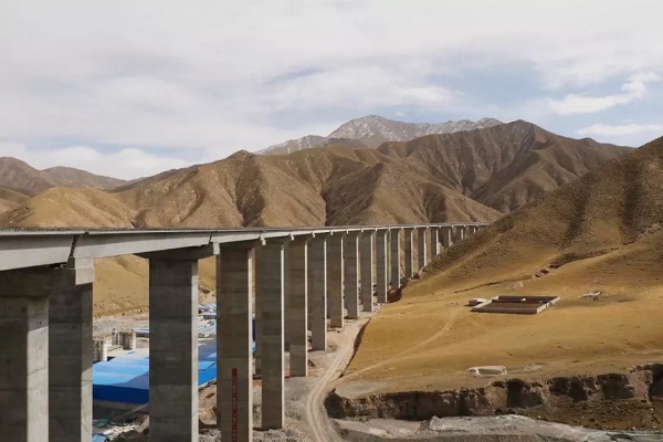 大巴特沟特大桥是柳格国高敦当高速公路全线最长的一座特大桥,其位于阿克塞县城海拔3400米的当金山无人区,全长2600米,上部结构为52*40m+26*20m预应力混凝土箱梁结构,最大桥高63.5m。