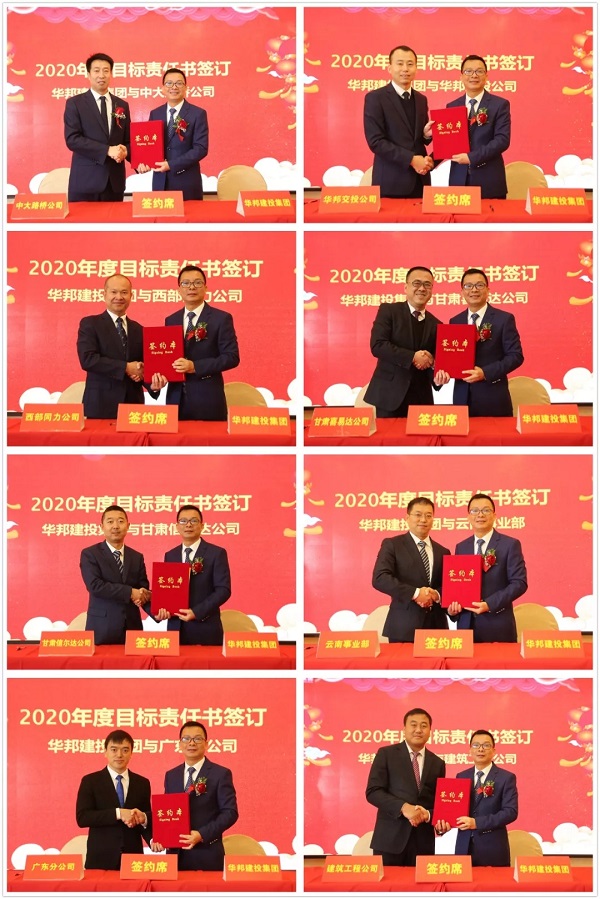 随后,部分分子公司、事业部与集团公司签订2020年度目标责任书并庄严宣誓,表示将坚决履行岗位职责,认真执行管理制度,严格恪守职业操守,认真完成全年工作任务和目标,并接受全员监督,为缔造社会尊敬的百年华邦而努力奋斗。华邦控股集团副总裁李顺臣监誓。
