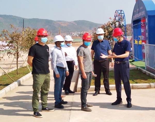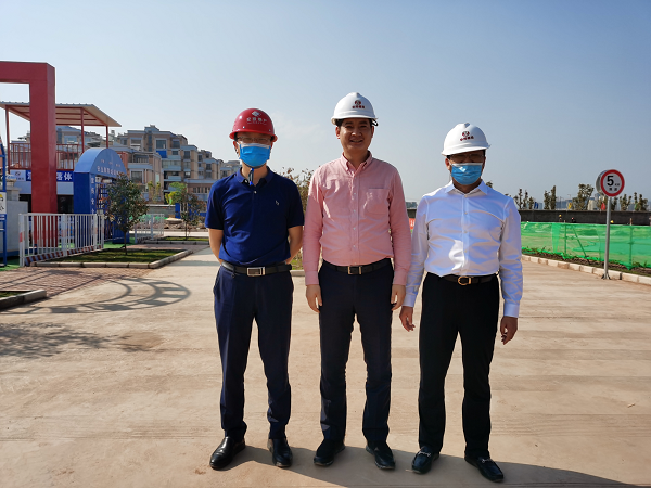 2020年3月30日下午,楚雄州交通投资开发有限责任公司董事长赵煕宇及开发板块项目经理、总工程师一行莅临楚雄民族中学搬迁建设项目,对现场防疫、安全文明施工等多方面进行观摩学习和交流指导。伟德体育官方网站集团股份有限公司执行总裁、云南华邦林业发展有限公司董事长蔡继荣,云南华邦林业发展有限公司执行总经理张志强、副总经理毕绪文全程陪同。