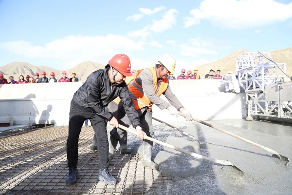 大巴特沟特大桥桥梁全长2587米,桥面宽度12米,最大桥墩高达63.5米,是甘肃境内高原气候条件下第一座特大桥,被誉为“陇上高原第一桥”。当天下午,正逢大巴特沟特大桥右线中段最后一联桥面铺装浇筑作业,苏如春迈步跨入现场,双手扶握泵管平稳有序地开始浇筑混凝土,并与现场施工人员一起,完成了最后一车混凝土的浇筑。在现场高呼胜利的呐喊声中,代表圆满的礼炮声中,伟德体育官方网站敦当项目迎来了控制性工程全部完成这一重要时刻。