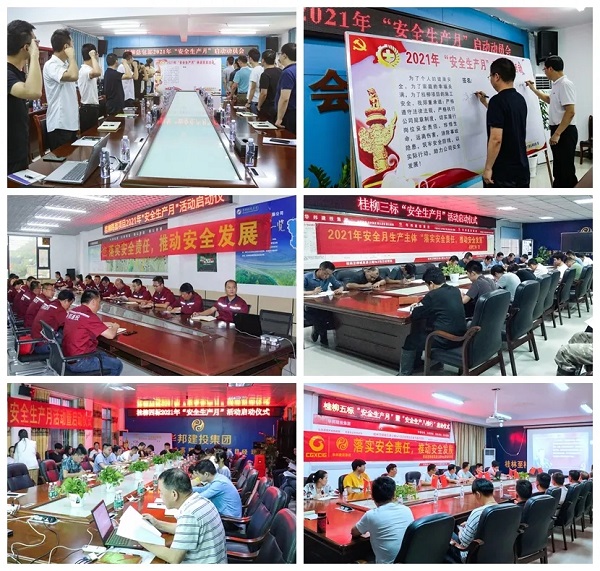 在桂柳项目,桂柳总承包部组织观看《生命重于泰山——学习习近平总书记关于安全生产重要论述》专题片,进一步筑牢安全理念、增强安全意识、落实安全责任。桂柳路面、三、四、五标相继开展启动仪式,纷纷表示将以“安全生产月”活动为契机,强化安全责任落实,不断提升防范化解各类安全风险的能力,持续稳步推进安全生产工作。