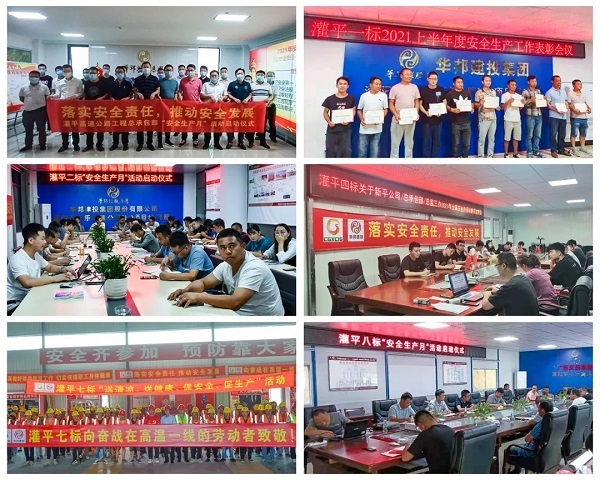 在灌平项目,灌平总承包部及灌平一、二、四、七、八标组织开展“安全生产月”动员大会,全体人员进行安全宣誓并签订安全生产承诺书。灌平一标还进行了“安全先进班组”评选活动,对于在安全生产工作中表现突出的班组及个人进行表彰奖励;灌平四标对劳务队伍进行高空作业、防雷电等安全培训;灌平七标开展“送清凉、送健康、保安全、促生产”活动,在安全体验馆对一线人员进行安全培训并发放防暑用品。通过本次活动,各项目牢固树立了安全发展理念,坚持防治结合、系统治理,落实安全生产责任,进一步夯实安全生产基础。