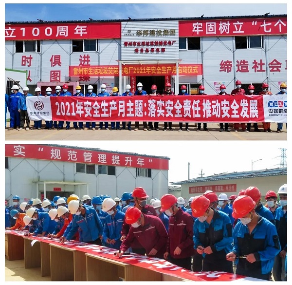 在广东湛江,雷州电厂项目全体参会人员进行了庄严的“安全宣誓”,并在“安全生产月”主题横幅上郑重签字承诺,以实际行动践行“安全生产从我做起”的主人翁意识。