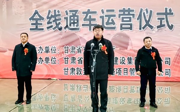 甘肃酒泉市委书记王立奇(中)宣布敦当高速公路全线通车