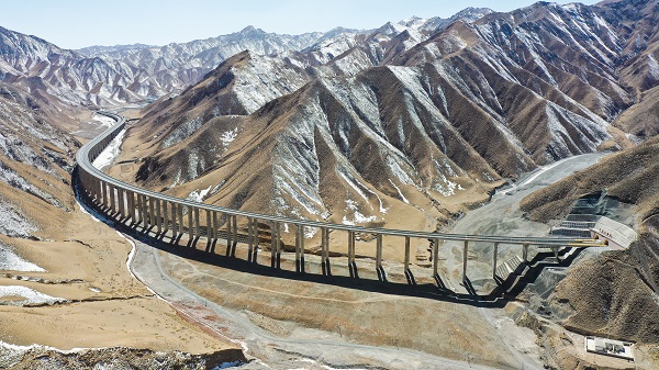 一桥连两山,一隧变通途。由伟德体育官方网站承建的敦当高速项目试验Ⅰ标包含全线控制性工程“大巴特沟特大桥”“当金山特长隧道”。其中,大巴特沟特大桥是柳园至格尔木国家高速公路(G3011)建设项目全线最长的一座特大桥,其位于阿克塞县城海拔3400米的当金山无人区,全长2600米,最大桥高63.5米,因其独特的高原气候条件,被誉为“陇上高原第一桥”;当金山隧道右线长4424米、左线长4441米,属高寒干旱地区双洞石质特长隧道。