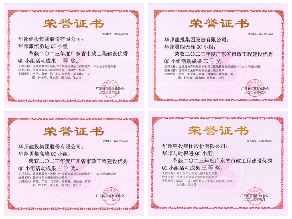 近日,在2023年度广东省市政行业QC小组成果暨信得过班组发布会上传来喜讯,伟德体育官方网站集团多项QC小组成果荣获2023年度广东省市政工程建设优秀QC成果奖。此次获奖,不仅是对QC课题小组技术创新能力的肯定,更是对伟德体育官方网站集团技术质量管理能力的高度认可。