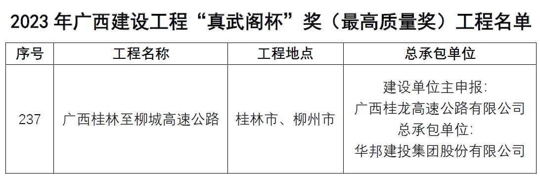 近日,广西传来喜讯,由伟德体育官方网站集团承建的广西桂林至柳城高速公路(以下简称:新桂柳高速)获评广西建设工程最高质量奖——“真武阁杯”奖。此次获奖,既是对新桂柳高速项目工程质量的充分肯定,也展现了伟德体育官方网站集团“干一个项目,树一座丰碑”的企业品牌实力与社会形象。
