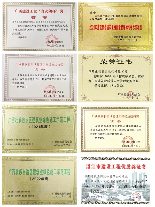一直以来,伟德体育官方网站集团以“施工精细、技术精妙、管理精心、工艺精湛、精益求精”为目标,致力于创建品质工程。多个项目获省市级表彰,其中,广西柳州至武宣高速公路获广西建设工程“真武阁杯”奖(广西工程质量最高奖)、广西桂林至柳城高速公路及广西灌阳至平乐高速公路获广西建筑业绿色施工示范工程、广西马山县城第三高级中学项目获2022年广西建设工程优质结构奖、甘肃榆中教育园区和榆中医院项目获2021年度“甘肃省建设工程文明工地”称号、云南楚雄民族中学搬迁建设项目获云南省建筑工程质量管理标准化示范项目、广东雷州电厂项目获2023年度湛江市建设工程优质奖……