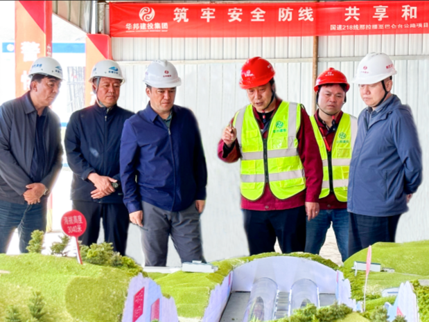 在艾肯隧道出口现场,西尔艾力·外力一行参观了隧道沙盘演示,观看了隧道视频介绍和信息化监控系统,听取了艾肯隧道建设重点、难点等情况汇报,并现场查看了最新引进的隧道施工先进机械设备。西尔艾力·外力表示,作为新疆那巴公路最长的高原高寒隧道,艾肯隧道施工难度大,希望参建单位坚定信心、攻坚克难,紧盯项目节点,优化施工方案,在确保安全生产的前提下,全力推进项目建设;相关部门要强化统筹协调,切实解决项目推进中的堵点、卡点问题,为项目建设创造良好条件。
