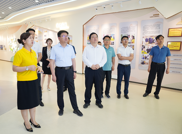 刘懿平(前排左二)对华邦美好家园养老集团的运营模式表示肯定