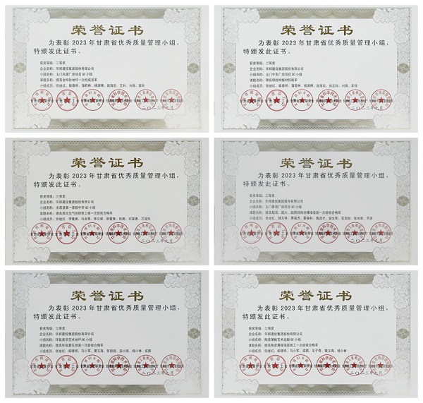 五个项目QC小组申报的课题成果荣获2023年甘肃省质量管理QC成果奖。