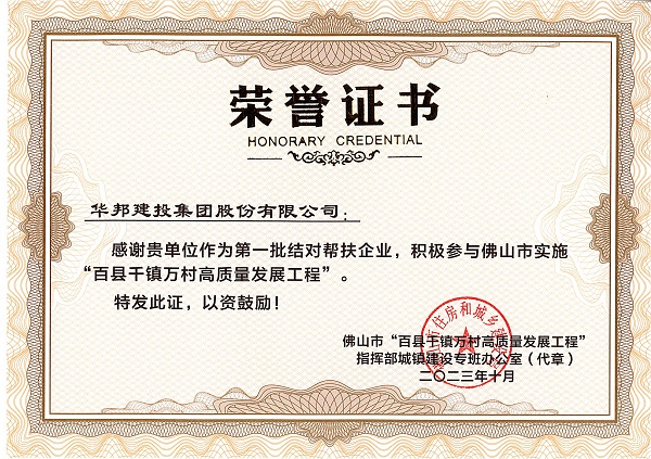 佛山市政府向结对帮扶企业颁发荣誉证书