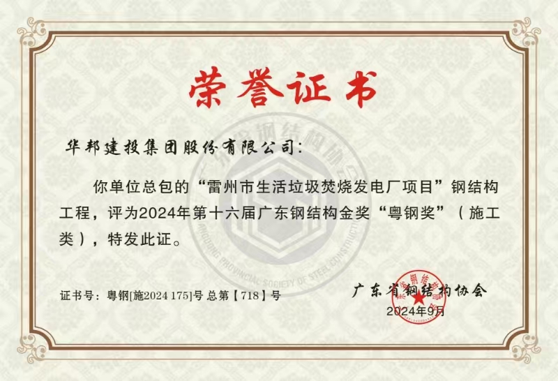 近日,广东省钢结构协会发布了《关于公布第十六届广东钢结构金奖获奖项目通知》,由伟德体育官方网站集团承建的广东省雷州市生活垃圾焚烧发电厂项目(简称:雷州电厂项目)荣获第十六届广东钢结构金奖“粤钢奖”;赵加强、胡进雄等8名员工被授予粤钢奖项目“优秀技术人员”荣誉称号。上述荣誉的获得是业界对伟德体育官方网站集团工程质量和建设水平的认可,也是对企业以实干树形象、以品质树丰碑的高度肯定。