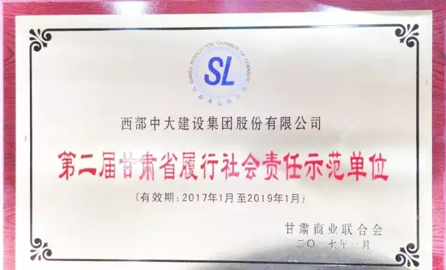 1月23日,由甘肃省商业联合会举办的第二届“甘肃省履行社会责任示范单位及先进个人”颁奖大会在兰州举行。西部中大建设集团股份有限公司荣获“甘肃省履行社会责任示范单位”称号。全国政协委员,甘肃省工商联副主席,华邦控股集团董事局主席苏如春荣膺“甘肃省履行社会责任先进个人”荣誉称号。