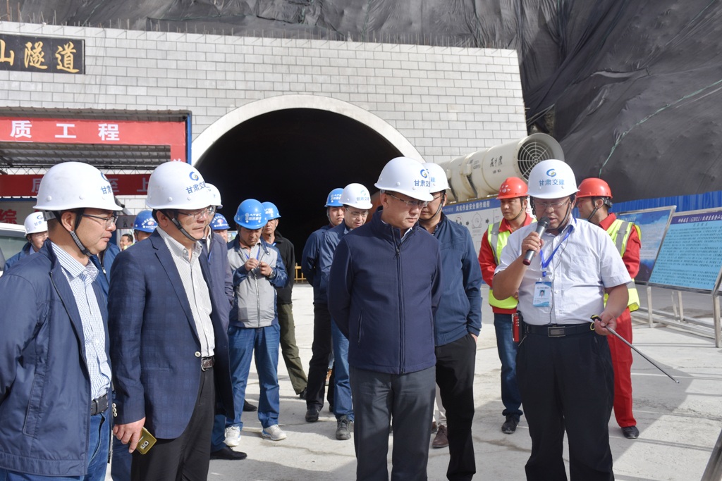 刘建勋副厅长(右二)在西部中大建设集团总裁胡秉军(左二)的陪同下视察当金山隧道施工情况