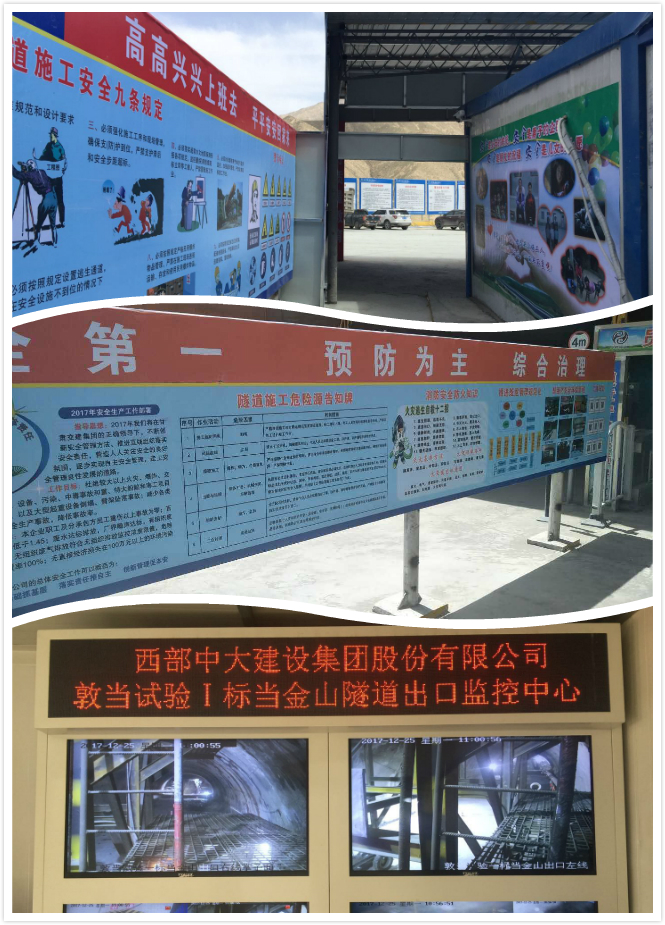 安全管理方面利用信息化管理手段安装门禁系统,由人车分离系统、人员定位系统、洞内外监控系统、视频对讲系统、户外LED大屏五部分组成,通过门禁系统的实施有效防止闲杂人员及车辆进入施工现场,避免人车混行造成安全事故,通过视频监控,有效防止洞内人员不规范操作,提高施工现场质量管控力度。增加了二衬台车和开挖台车的反光标志、工作爬梯。安装了隧道有害气体检测自动报警装置,隧道有毒有害气体检测仪同时配备了氧气传感器、可燃气体传感器、一氧化碳传感器和硫化氢传感器,可同时检测四种气体,具有非常清晰的液晶显示屏,持续不断的独立显示四种气体浓度,声光震报警提示,保证在非常不利的工作环境下也可以检测危险气体并及时提示操作人员预防。