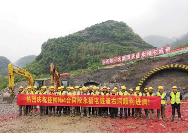 4月15日上午,永福屯隧道进口端右洞顺利进洞