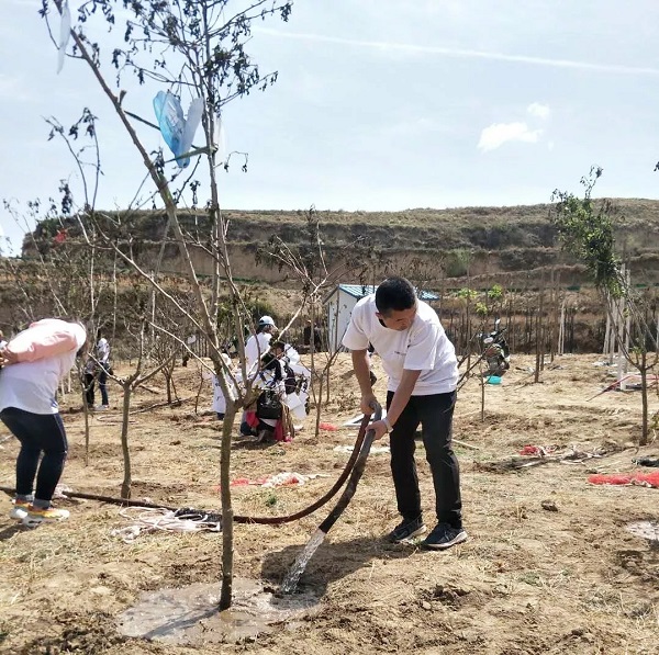 4月20日上午,兰州市榆中县梦幻田园人声鼎沸,热闹非凡。挥锹铲土、扶苗填坑、灌溉浇水……在植树现场,大家或两人一组,或三五成群,各司其职、干劲十足,合力栽下了一株株树苗,处处都呈现出一派热火朝天的忙碌景象。经过紧张劳动,原本荒凉的土地上连片的树苗错落有致、迎风而立。