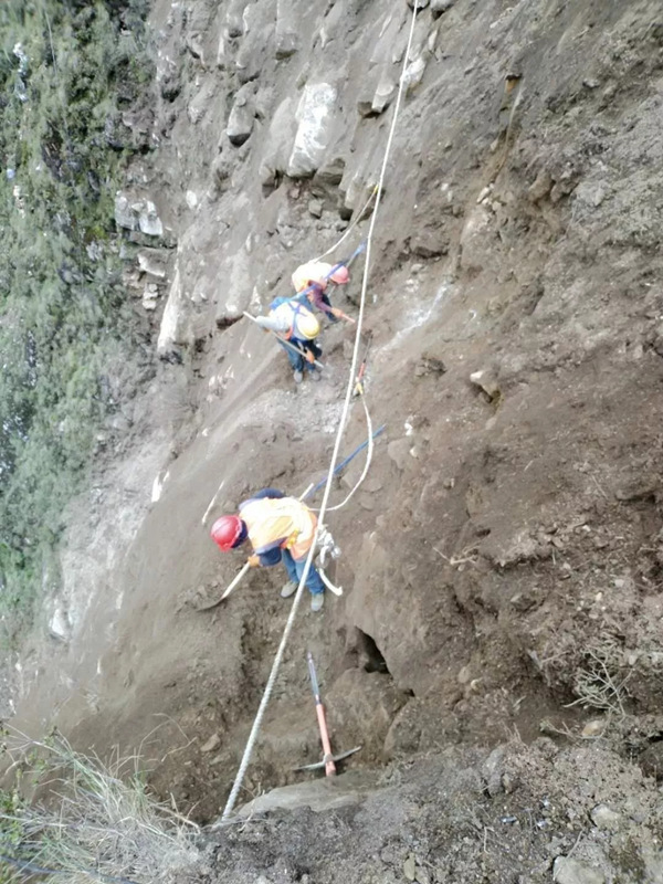 悬崖陡坡采用腰间缠绕飞索作业保障施工安全