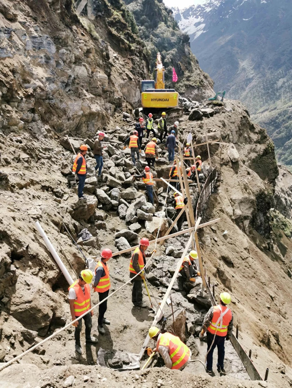 由于错那项目处于地层岩性主要为残破积的碎块石土,部分原路基下边坡防护基础位于斜岩和陡峭临崖面,道路狭窄,沿线边坡在雨季及降雨作用下坡体稳定性极差,时逢雨季施工,地质灾害频发,塌方、落石现象时有发生。