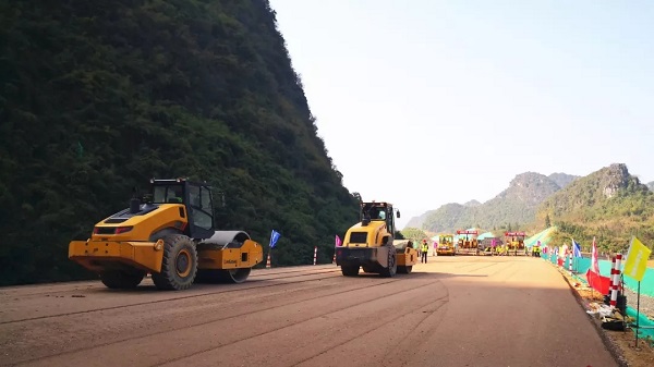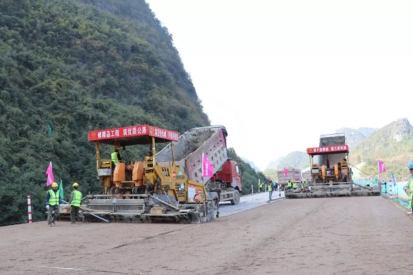 12月27日,随着一阵喜庆的鞭炮声响,在伟德体育官方网站集团承建的桂林至柳城高速公路桂柳五标主线K70+560-K71+580段左幅上,摊铺机、压路机、运输车等机械设备紧张有序的开始工作,垫层混合料在两台摊铺机后缓缓滑出。至此,桂林至柳城高速公路项目在此开启了新篇章——路面工程垫层试验段施工正式开始。