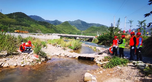 演练活动模拟钢筋厂所处地区连续降雨,河水水位不断上涨,导致涨洪的突发情况,检验项目部各责任人及现场作业人员面对险情的紧急应急救援措施及实战能力。演练内容包括通知危险区域人员转移、抢救落水人员、抢修物资、护送伤员及演练总结等五个项目。整个演练过程,组织严密,配合默契,严谨有序,达到了预期的效果。