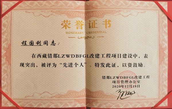 伟德体育官方网站集团错那项目自2016年12月进场,每年都要经历三个月的雨季以及长达四个月的雪冻季节,为保工期,项目全体参建人员加班加点,与时间赛跑。克服高原、不良地质、材料供给困难等不利因素下,圆满完成了各项施工任务。获得业主单位“攻坚克难、勇于担当”的赞扬;同时,项目负责人程国利也喜获“先进个人”的光荣称号。