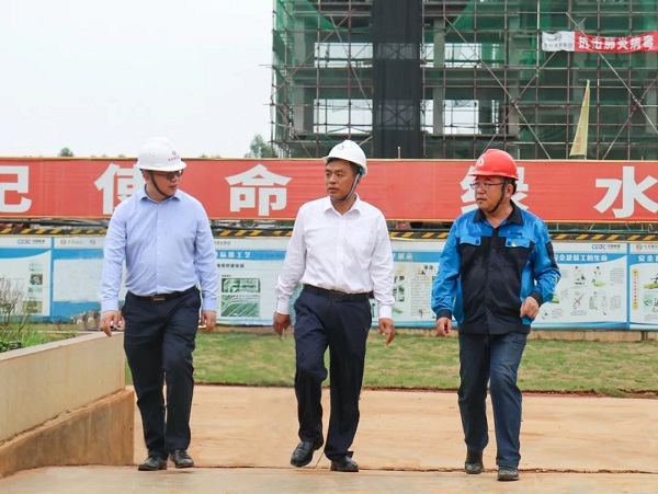 ▲ 张仁建(中)调研项目施工现场