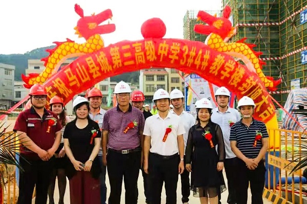 近日,由伟德体育官方网站集团承建的广西马山县城第三高级中学项目3#、4#教学楼主体工程封顶,标志着该项目取得关键性进展。马山县副县长黄任含,马山县委、县政府、县教育局、住建局、财政局、人社局、建设单位、监理单位等相关单位参加了封顶仪式。