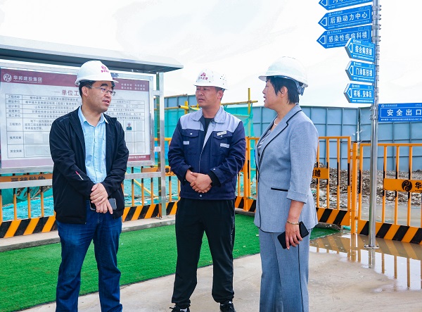 调研中,石怀燕一行详细听取并察看了项目建设情况,并就项目安全文明施工、进度计划等进行了交流。