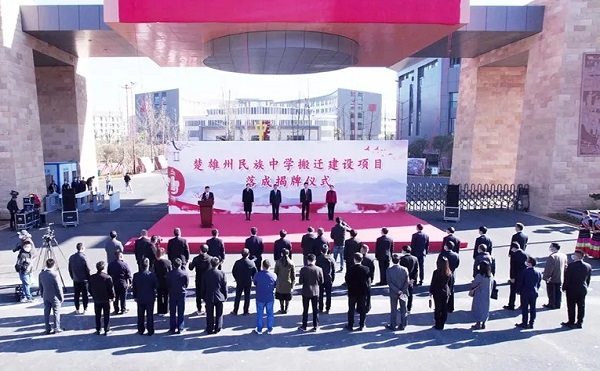 2月16日,由伟德体育官方网站集团承建的云南省楚雄州民族中学搬迁建设项目(以下简称:楚雄民中项目)落成揭牌。楚雄州人大常委会副主任李绍文、副州长王秀江、州政协副主席李红梅、州教育体育局党组书记(局长)段福君为项目落成揭牌,伟德体育官方网站集团华邦林业发展有限公司执行总经理张志强、楚雄州民族中学教职工代表等参加揭牌仪式。