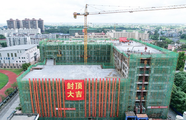 随着学前初等综合楼最后一方混凝土浇筑,钦州幼专项目主体结构全面封顶