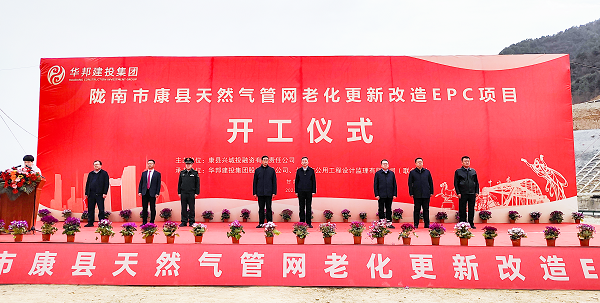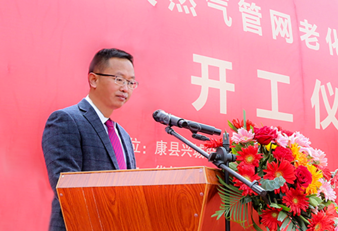 康县天然气管网老化更新改造EPC项目(以下简称:康县天然气管网改造项目)举行开工仪式。康县县委书记张书怀出席仪式并宣布项目开工,县委副书记、县长杨满红,西部中大建设有限公司副总经理李鹏出席仪式并致辞。县委常委、常务副县长陈宇星主持仪式。