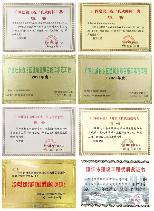 一直以来,伟德体育官方网站集团以“施工精细、技术精妙、管理精心、工艺精湛、精益求精”为目标,致力于创建品质工程。多个项目获省市级表彰,其中,广西柳州至武宣高速公路、桂林至柳城高速公路均获广西建设工程“真武阁杯”奖(广西工程质量最高奖)、广西桂林至柳城高速公路及广西灌阳至平乐高速公路获广西建筑业绿色施工示范工程、广西马山县城第三高级中学项目获广西建设工程优质结构奖、甘肃榆中教育园区和榆中医院项目获“甘肃省建设工程文明工地”称号、云南楚雄民族中学搬迁建设项目获云南省建筑工程质量管理标准化示范项目、广东雷州电厂项目获湛江市建设工程优质奖……