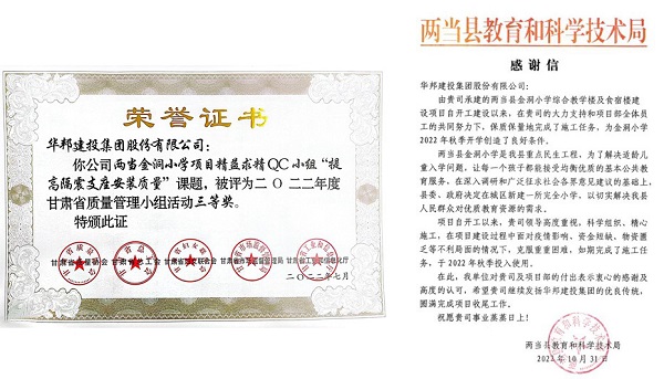 “干一个项目,树一座丰碑。”该项目的工程品质能力得到了各级单位及业主的认可,荣获甘肃省质量管理QC成果三等奖,同时项目使用单位也送来表扬信,表达对伟德体育官方网站集团工程建设能力的肯定。