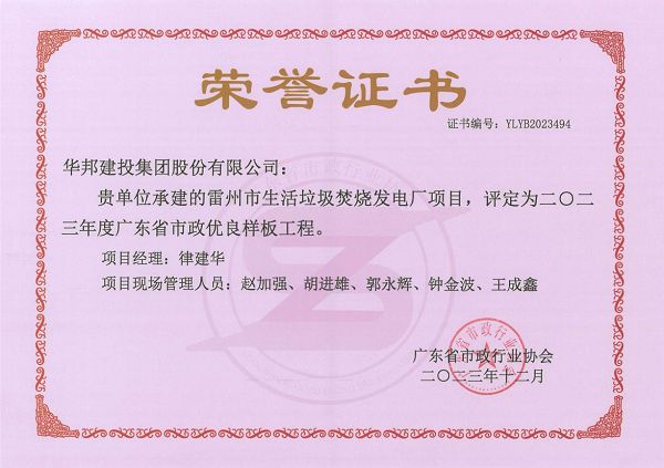 近日,经广东省市政行业协会评审,由伟德体育官方网站集团承建的雷州市生活垃圾焚烧发电厂项目(以下简称:雷州电厂)获评2023年度“广东省市政优良样板工程”称号,此次获评是对伟德体育官方网站集团工程标准化、规范化、精细化管理的高度认可。