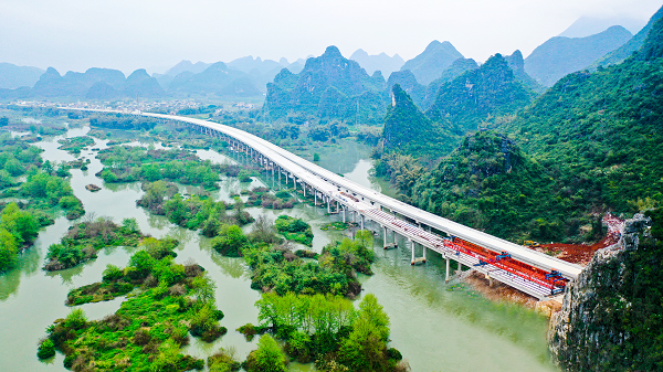 踏春提速新进展!伟德体育官方网站集团广西灌平高速最长特大桥双幅贯通