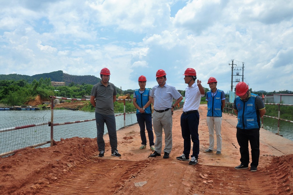 6月18日至20日,总裁胡秉军、副总裁陈平一行到梧州环城项目施工现场,实地查看施工现场受灾情况,慰问受灾工地员工,采取现场办公,指导生产自救。胡总裁要求尽快妥善安置好受灾的员工和外协队伍;要尽快清理、恢复受损的施工便道、搅拌站、试验室等,拟定具体工作计划并责任到人;要从此次洪灾中吸取教训、总结经验,提高山区施工应对危机的能力,尽快恢复生产相关设施。