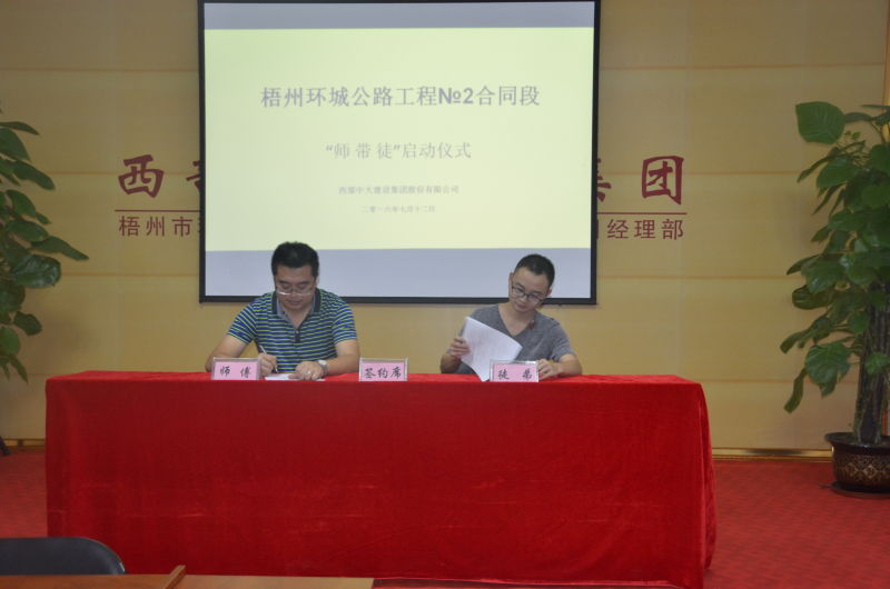 2016年7月12日,梧州市环城公路工程No2合同段迎来了22名大学实习生。为了让其快速熟悉企业,了解企业文化,适应新的工作环境,并迅速融入其中,梧州环城项目举行了凝聚新生力、同心创未来的欢迎仪式,并组织师带徒协议签订仪式。