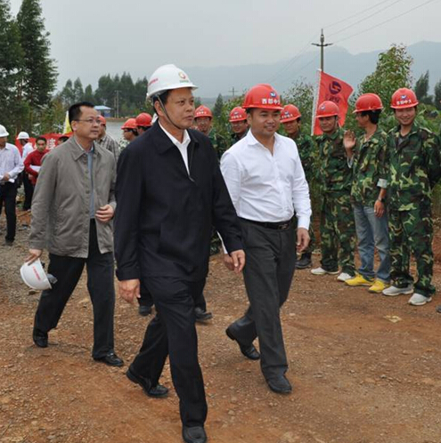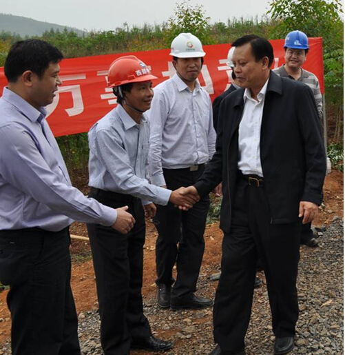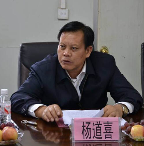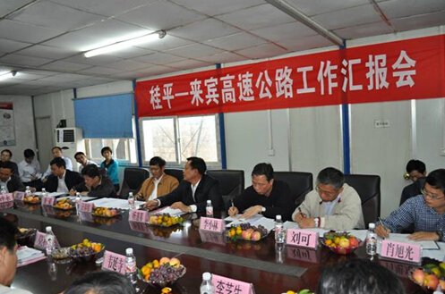 杨道喜副主席在会上作出重要指示 工作汇报现场 2011年10月26日,广西壮族自治区人民政府副主席杨道喜率自治区交通运输厅副厅长李小林、自治区国土厅规划处副处长肖旭光、自治区发改委工业处副处长廖一斌,来宾市市委常委、常务副市长莫桦、武宣县县委书记何基敏等领导一行十余人考察调研西部中大集团公司在建项目桂来高速公路工程。广西交通投资有限公司副董事长、总经理刘可、集团公司董事长苏如春、集团公司副总裁兼桂来高速公路工程总承包部总经理杨川及广西桂和高速公路有限公司总经理胡秉军等领导陪同考察
