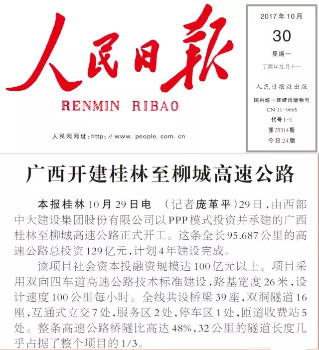 这两天,西部中大建设集团和桂柳高速公路引爆了媒体圈! 10月29日,由西部中大建设集团股份有限公司以PPP模式投资并承建的桂林至柳城高速公路正式开工,当天上午10点,在广西桂林市临桂区举行了开工仪式。广西壮族自治区副主席陈刚以及各级领导,华邦控股集团董事局主席苏如春出席活动。桂柳高速公路项目和西部中大建设集团引发了《人民日报》、新华社、中新社、人民网等央媒,央视网、央广网等主流新闻媒体,新浪、网易、搜狐、腾讯等门户网站,香港主流政经、财经媒体等争相报道,网友纷纷在微信朋友圈转发并评论,为西部中大建设集团喝彩、为民生工程点赞。
