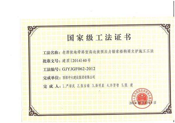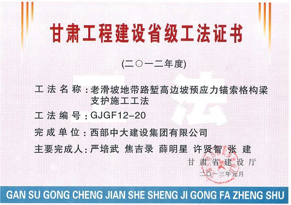 老滑坡地带路堑高边坡预应力锚索格构梁支护施工工法