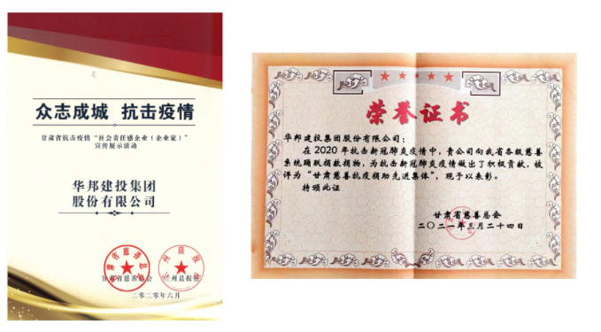 甘肃省慈善总会授予伟德体育官方网站集团“甘肃省抗击疫情社会责任感企业”“甘肃慈善抗疫捐助先进集体”称号